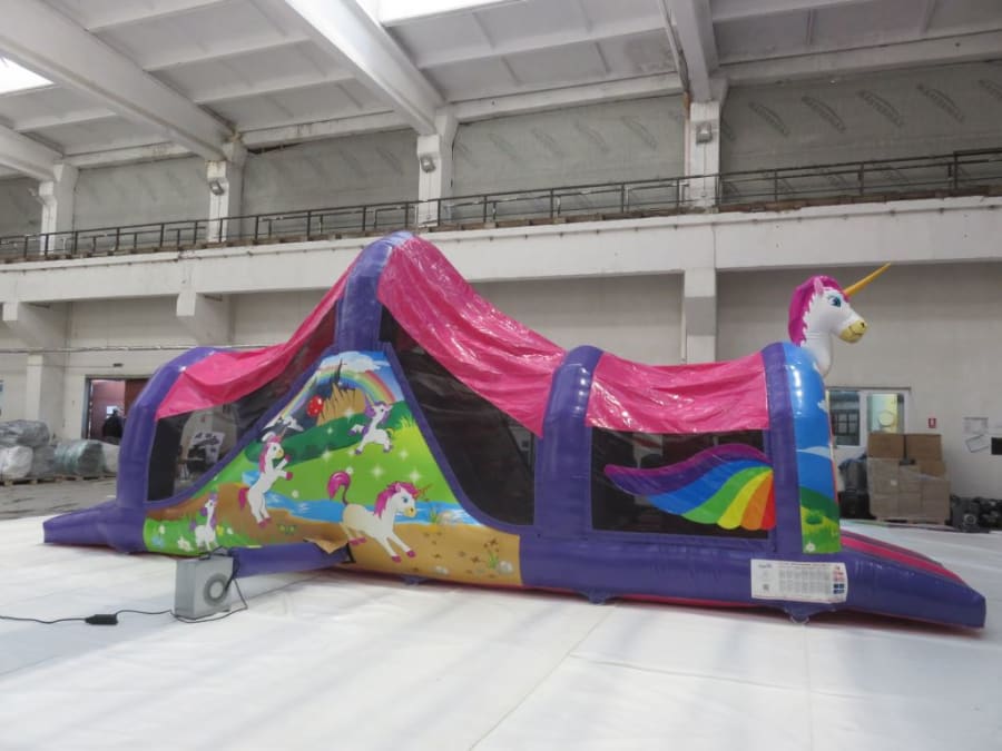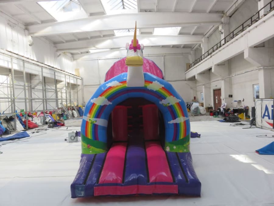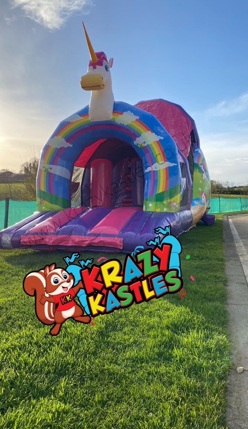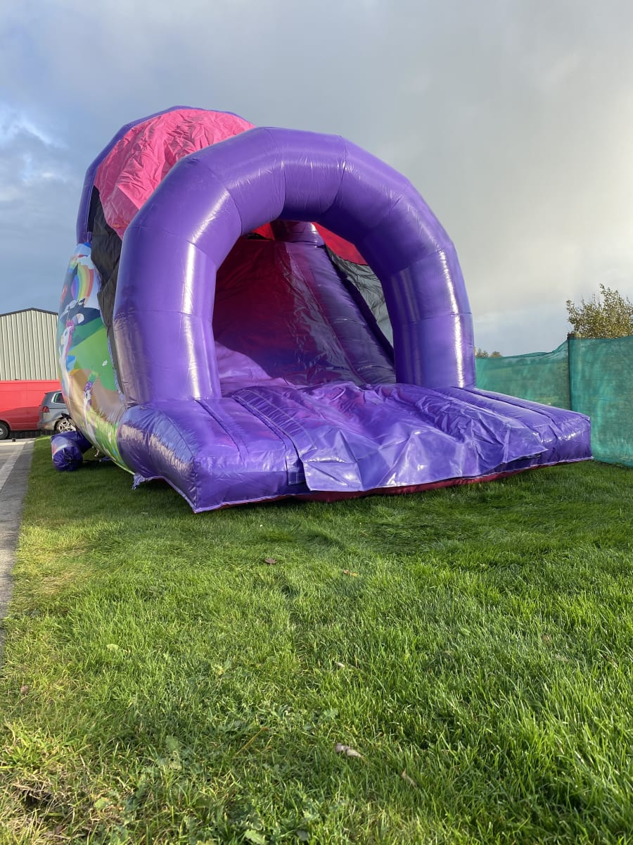 Brand New for this year 2021 our 35ft Unicorn assault course is sure to be a hugh hit with kids and parents all over Tyrone and Fermanagh. Enter this beautiful castle with the large eye catching unicorn head a prominent feature and sure to turn heads all around Enniskillen, Omagh and the surrounding areas. A nice bounce area with biff bash tubes await all the little bouncers before climbing the double steps and zip down the large 7ft slide!!... And do it all again and again and AGAIN. This stunning inflatable with its bright digital artwork really stands out and catches the eye.