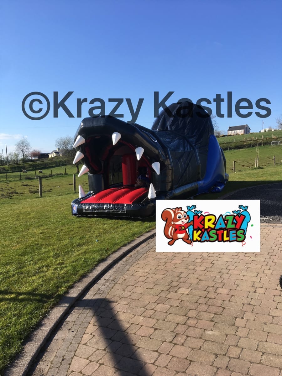 An absolutely stunning design that will catch the eye of all the party goers both big and small. Enter via the razor sharp teeth and navigate through the biff bash, then climb the double ladders to the top of its 7ft high slide! Zoom to the bottom and start all over again! Great fun for all!